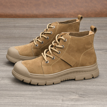 Y 38-44 yeni erkek ilk katman deri kaymaz dayanıklı iş ayakkabısı şık ve çok yönlü rahat yüksek Top yarım çizmeler